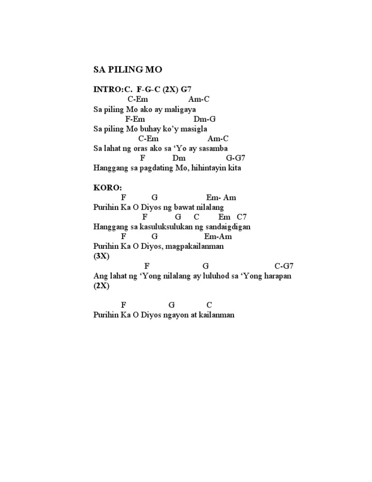 Magwawagi ka Nakikiusap ako sayo nagmamakaawa Kunin mo nang lahat sa akin Wag lang sya Kunin. Lahat ng tuhod sa Iyo ay luluhod G AG Fm7 Bm7 Lahat ng labi magsasabing Em7 Ikaw lamang Hesus AC D Ang Panginoon D GD Kabanal-banalang Diyos AC D Walang katulad Mo Bm Em C -A Lahat ng tuhod sa Iyo ay luluhod G AG Fm7 Bm7 Lahat ng labi magsasabing Em7 Ikaw lamang Hesus AC D Ang Panginoon. Rumaragasang pagpapala Pag-ibig na kay dakila Sayo oh diyos makikita.